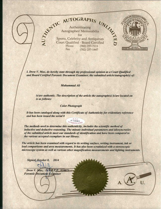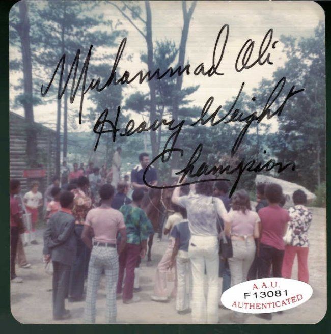 Muhammad Ali Signed Photograph AAU Certified, this photograph is approximately 3.5 x 3.5 inches.