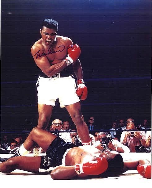 Muhammad Ali Signed Photograph AAU F12403 Color photograph of Ali standing over Liston 8 x 9.5 inches.