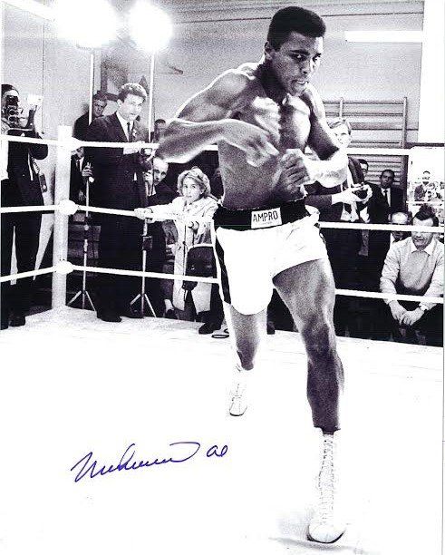 Muhammad Ali Signed Photograph AAU F12413 this is a black and white photograph of Ali shadowboxing which measures 8 x 10 inches.