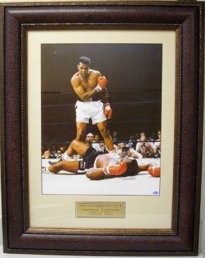 Muhammad Ali is a three-time World Heavyweight Champion, who is widely considered one of the greatest heavyweight championship boxers of all time. As an amateur, he won a gold medal in the light heavyweight division at the 1960 Summer Olympics in Rome. After turning professional, he went on to become the first boxer to win the lineal heavyweight championship three times. Nicknamed "The Greatest", Ali was involved in several historic boxing matches. This photo shows Muhammad Ali vs Sonny Liston unsigned 11X14 photo. Custom Leather Framed and Premium Matted.