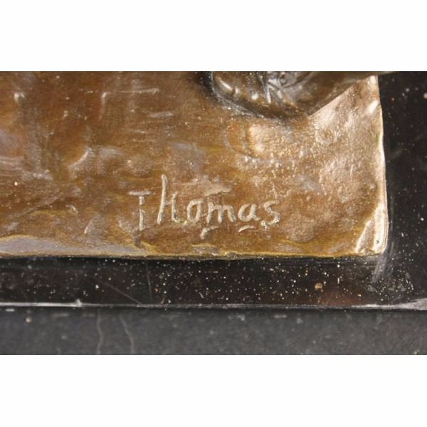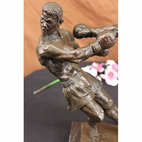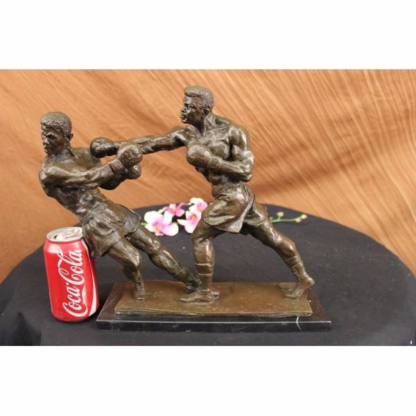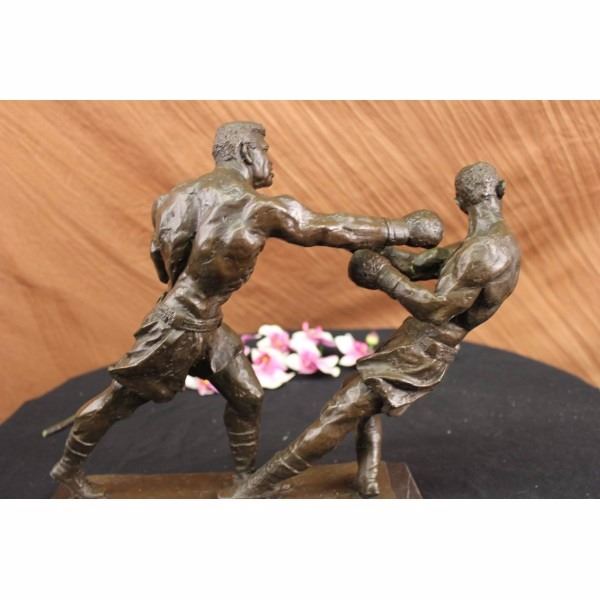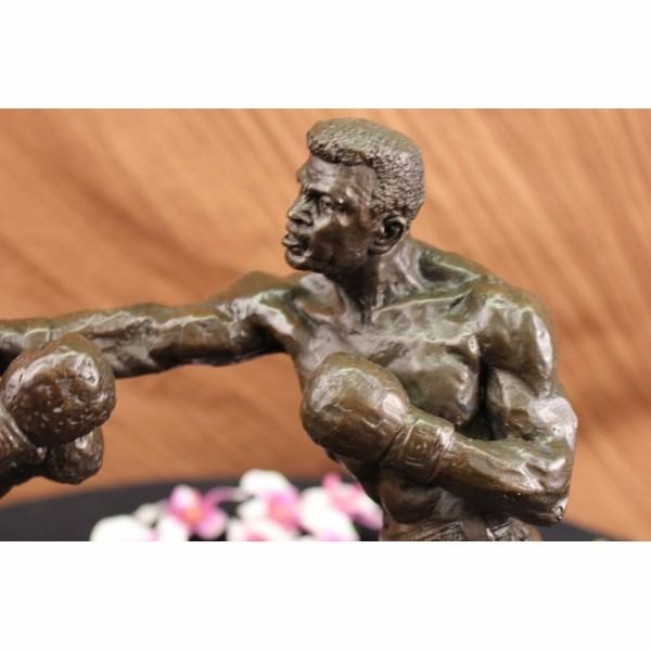 This is a bronze sculpture of Muhammad Ali and Sonny Liston's second round fight. This hand made sculpture is signed by artist Thomas, original piece featuring the historic boxing event between the legendary fighters. The ending of the second fight remains one of the most controversial in boxing history, a unforgettable moment for true boxing fans. Midway through the first round, Liston fell to the canvas, in what many have argued was not a legitimate knockdown. Ali stood over his fallen opponent, gesturing and yelling at him, Get up and fight, sucker! The moment was captured by ringside photographer Neil Leifer, and has become one of the most iconic images in sports. Condition: This sculpture is in perfect condition. Bronze Dimensions with Marble Base:Height 12" x Width 16" Marble Dimensions: 12" X 4 1/2" Height without base: 11 1/2" Weight : 17 LBS Inventory : 29X122911392