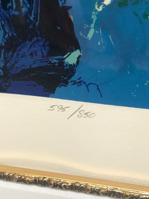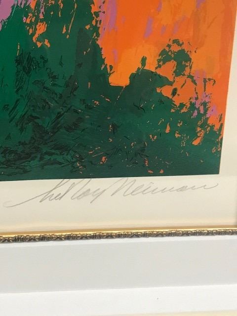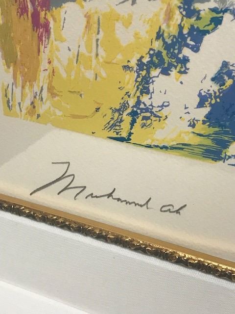 "Muhammad Ali" by LeRoy Neiman (1921-2012) - Hand signed by the artist and the original signature of the subject Muhammad Ali! Limited edition serigraph #595 of 850 - Framed size = 43" wide x 58" tall