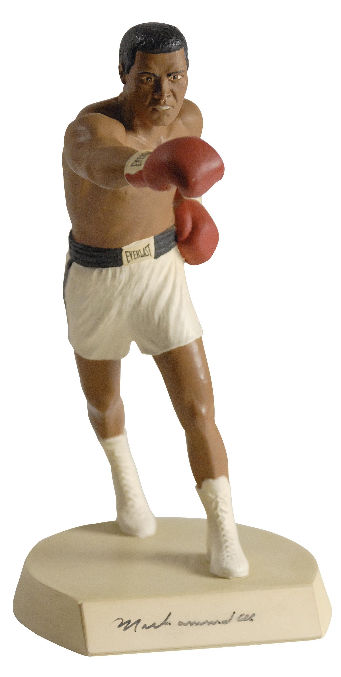 Hand-signed limited edition (#813/3500) cold-cast porcelain Salvino figurine of Ali throwing a jab entitled ‘The Greatest,’ signed on the front of the mount in black felt tip. In fine condition, with light brushing to signature. Accompanied by the original box and Salvino Certificate of Authenticity.