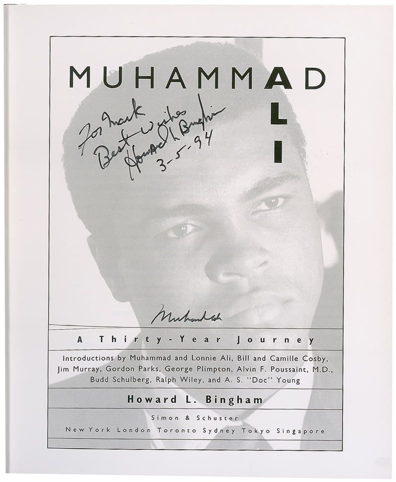 Signed book: Muhammad Ali: A Thirty Year Journey. First edition. NY: Simon & Schuster, 1993. Hardcover with dustjacket, 8.75 x 10.25. Signed on the title page in black felt tip by Ali and also signed and inscribed by the author Howard Bingham. In fine condition.