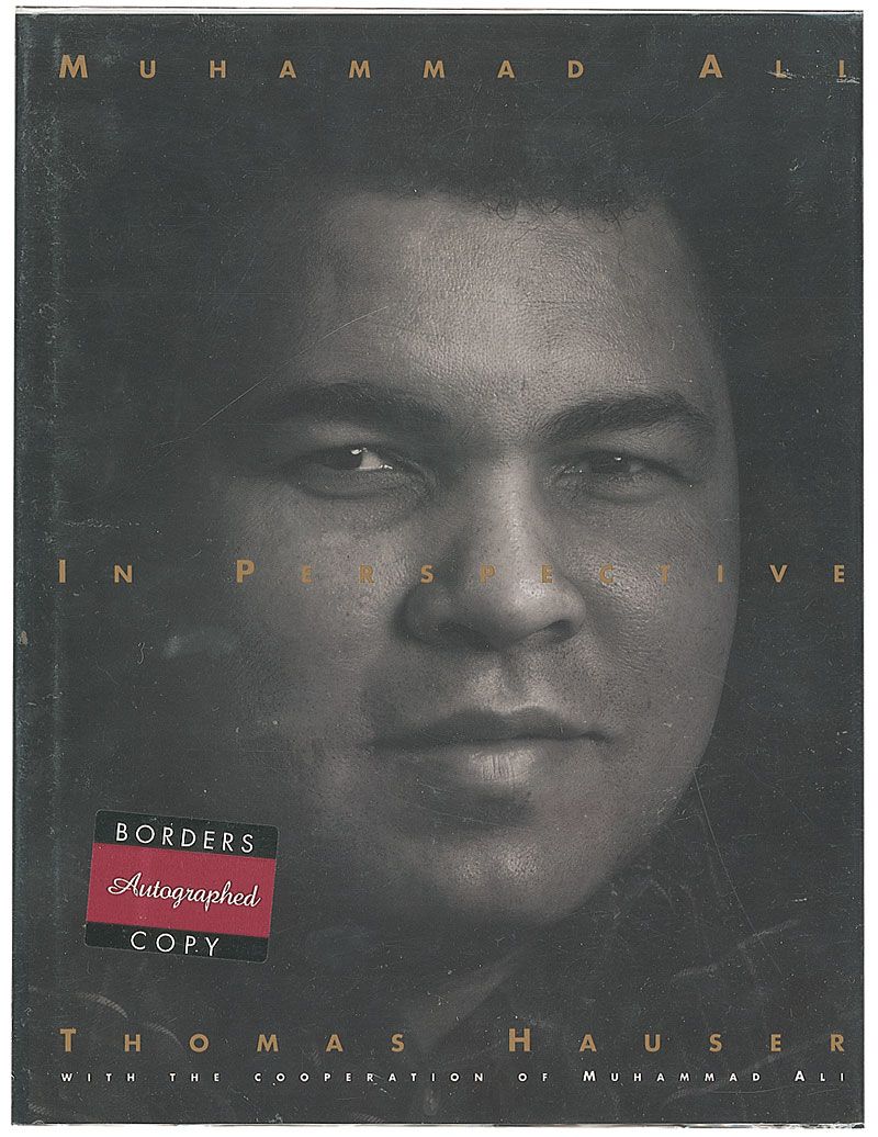 Signed book: Muhammad Ali: On Perspective. First edition, first printing. San Francisco: Collins Publishing, 1996. Hardcover with dust jacket, 9.5 x 12.25, 175 pages. Signed on a bookplate affixed to the first free end page. In fine condition, with a prom