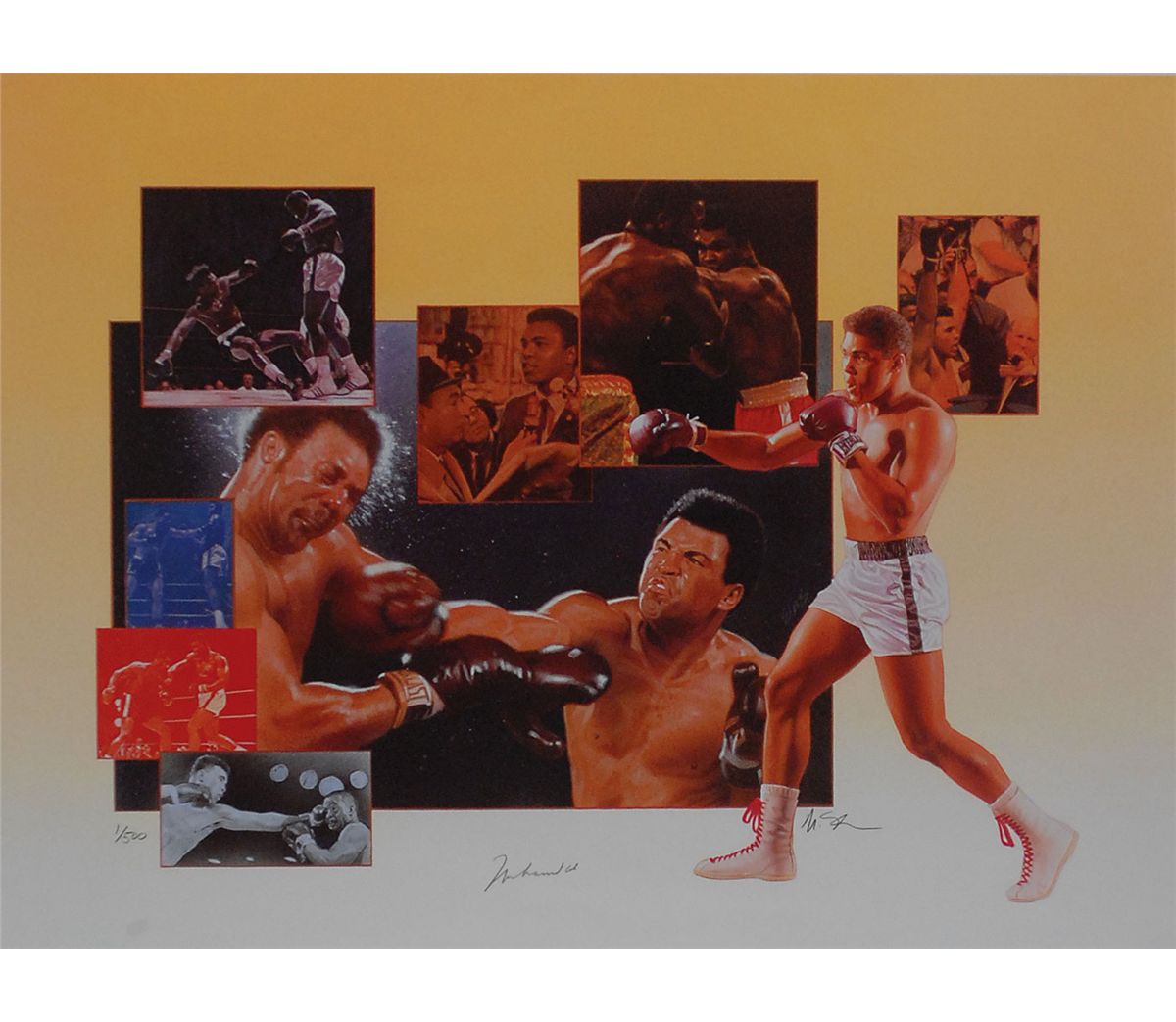 Color limited edition 22.5 x 18 print entitled ‘Champ,’ numbered 1/500, signed in the lower border in pencil by Ali. Also signed in the lower right in pencil by the artist, Michael Elins. Rolled and in fine condition.