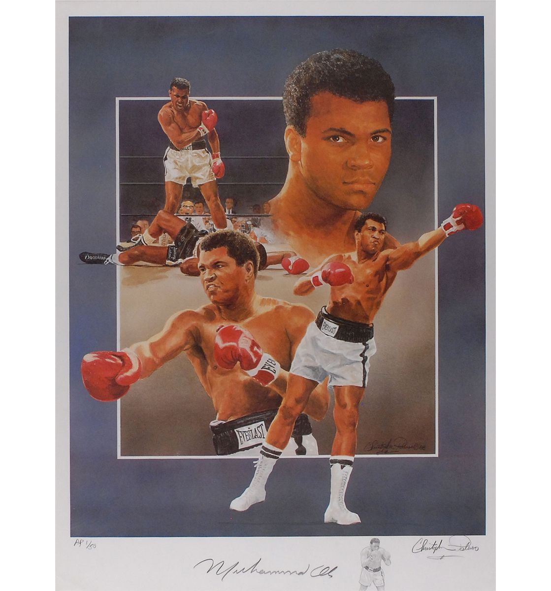 Color limited edition 17.5 x 24 print entitled ‘Ali’, numbered AP1/50, signed in the lower border in pencil. Also signed in pencil by the artist, Christopher Paluso. In fine condition, with a few scattered edge bumps and dings.