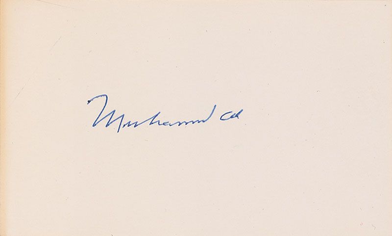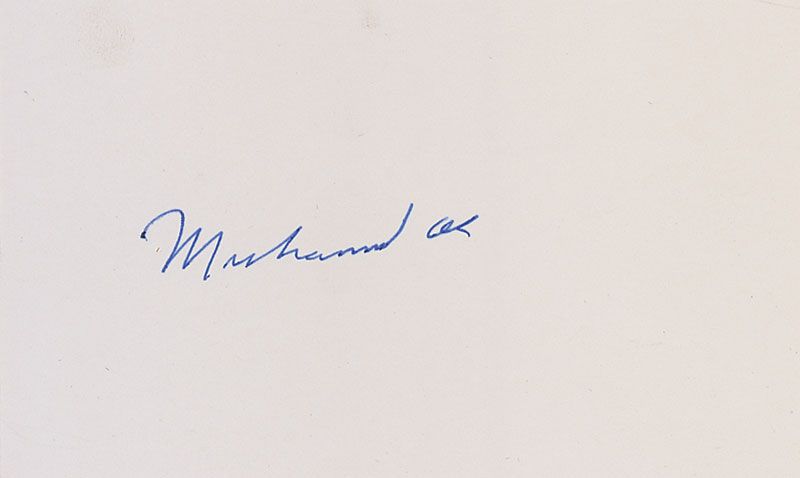 Two ballpoint signatures, “Muhammad Ali,” on individual off-white 5 x 3 cards. In fine condition.