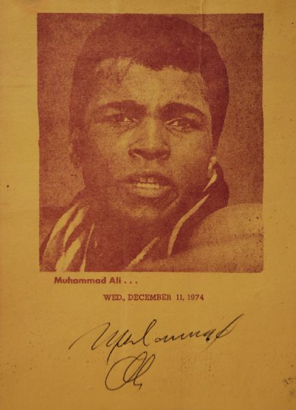 Vintage Program cover, trimmed to 5.5 x 7.25, for a December 11, 1974, appearance at W. Bruce Evans Junior High School, signed on the cover in black ballpoint. Trimmed as noted, and a few light creases, otherwise fine condition.