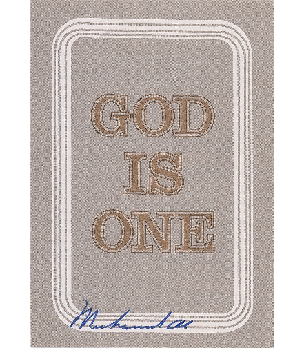 Religious pamphlet, entitled ‘God Is One,’ 3.5 x 5, signed on the front in blue ink. In fine condition.
