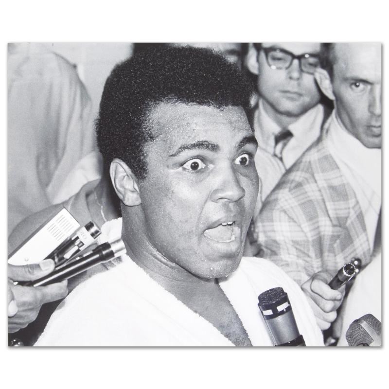 Own a piece of sports history with this Muhammad Ali photo. Taken at the peak of his fame as one of the greatest heavyweight championship boxers of all time, this photo is sure to complement any sports memorabilia collection. This is a licensed photograph on Kodak photo paper. Measures approx. 20" x 16" (no border).