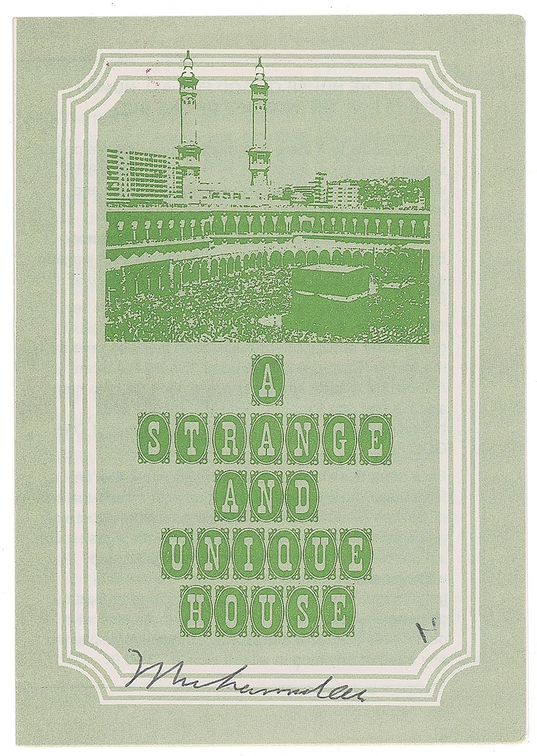 Religious pamphlet entitled "A Strange and Unique House," 3.5 x 5, signed on the front in black ballpoint by Muhammad Ali. In fine condition.