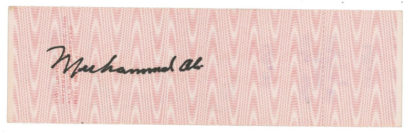 Original unused ticket to the Redding, California Civic Center closed circuit location for the Muhammad Ali - Larry Holmes bout on October 2, 1980, signed on the reverse in black felt tip. In fine condition.
