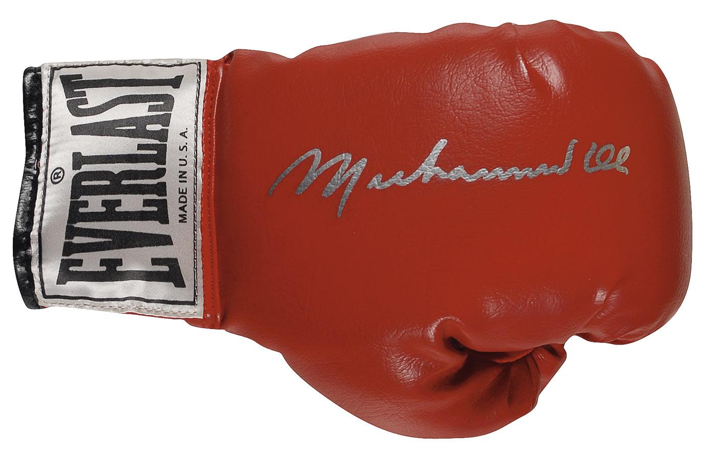 Everlast left-handed small-sized boxing glove, approximately 11” in length, boldly signed in silver ink on the top. In very fine condition with a James Spence Authentication label affixed. Accompanied by a full LOA from James Spence.