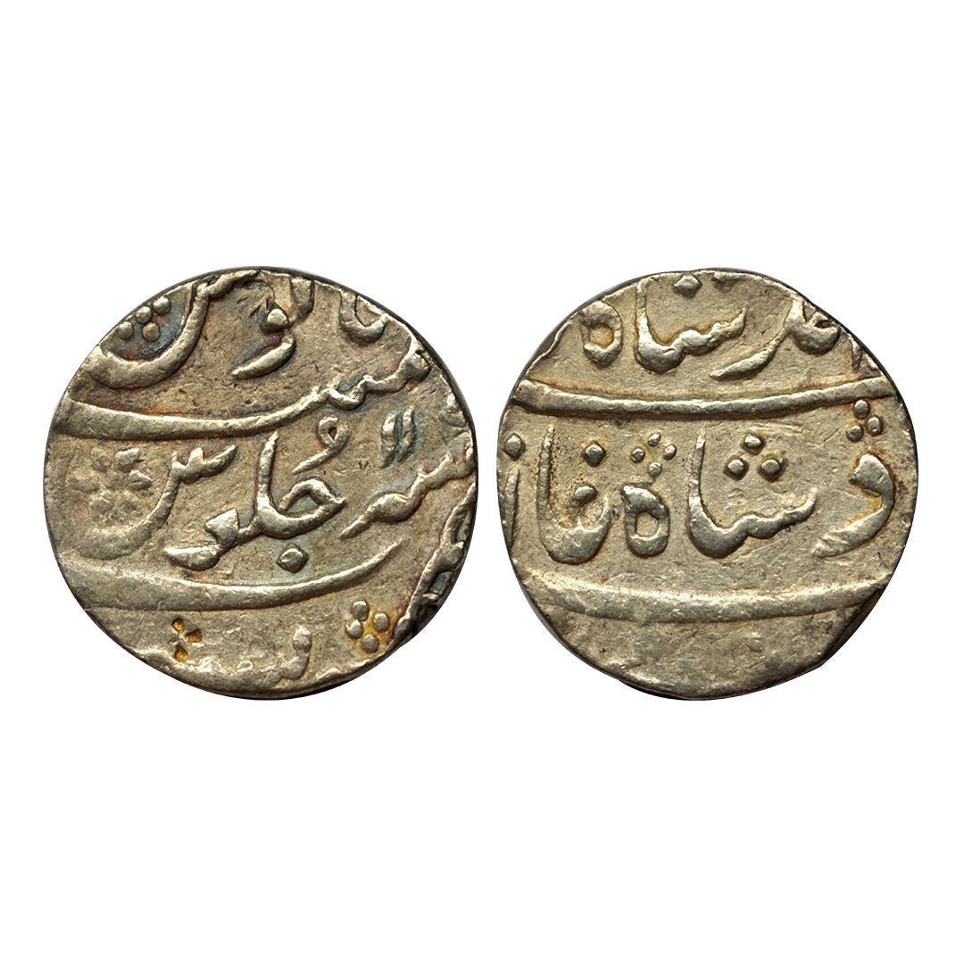 Muhammad Shah, Rupee, Mumbai Mint, Mint name in the bottom line on rev, RY 11, Sikka Mubarak type. Test Marks, Very Fine+.