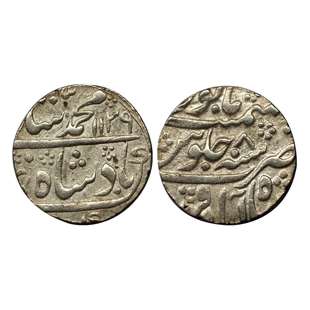 Muhammad Shah, Rupee, Shahbad Qanauj Mint, complete Mint name in the bottom line on rev, AH 1139, RY