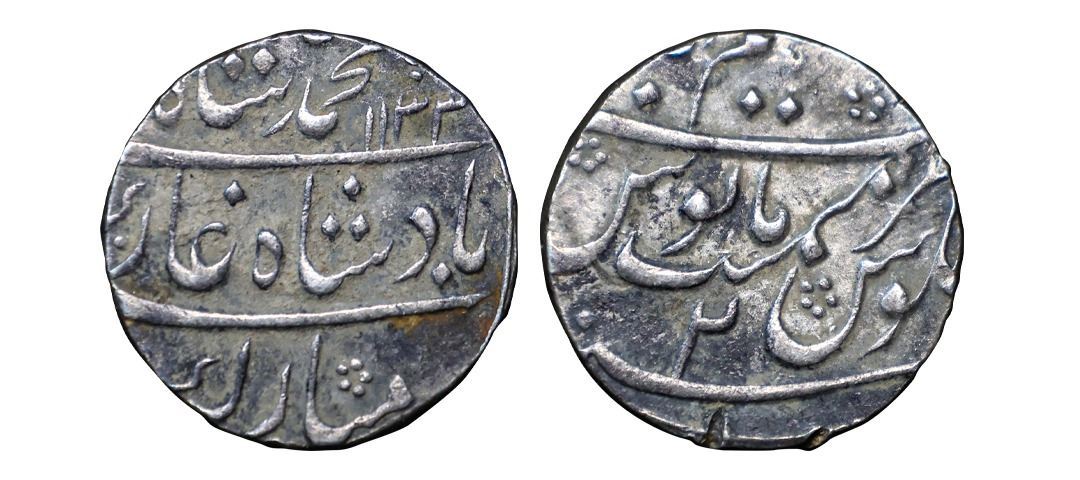 Muhammad Shah, Silver Rupee, 11.57g, Azimabad Mint, AH 1133/ RY 2 (KM 436.12).