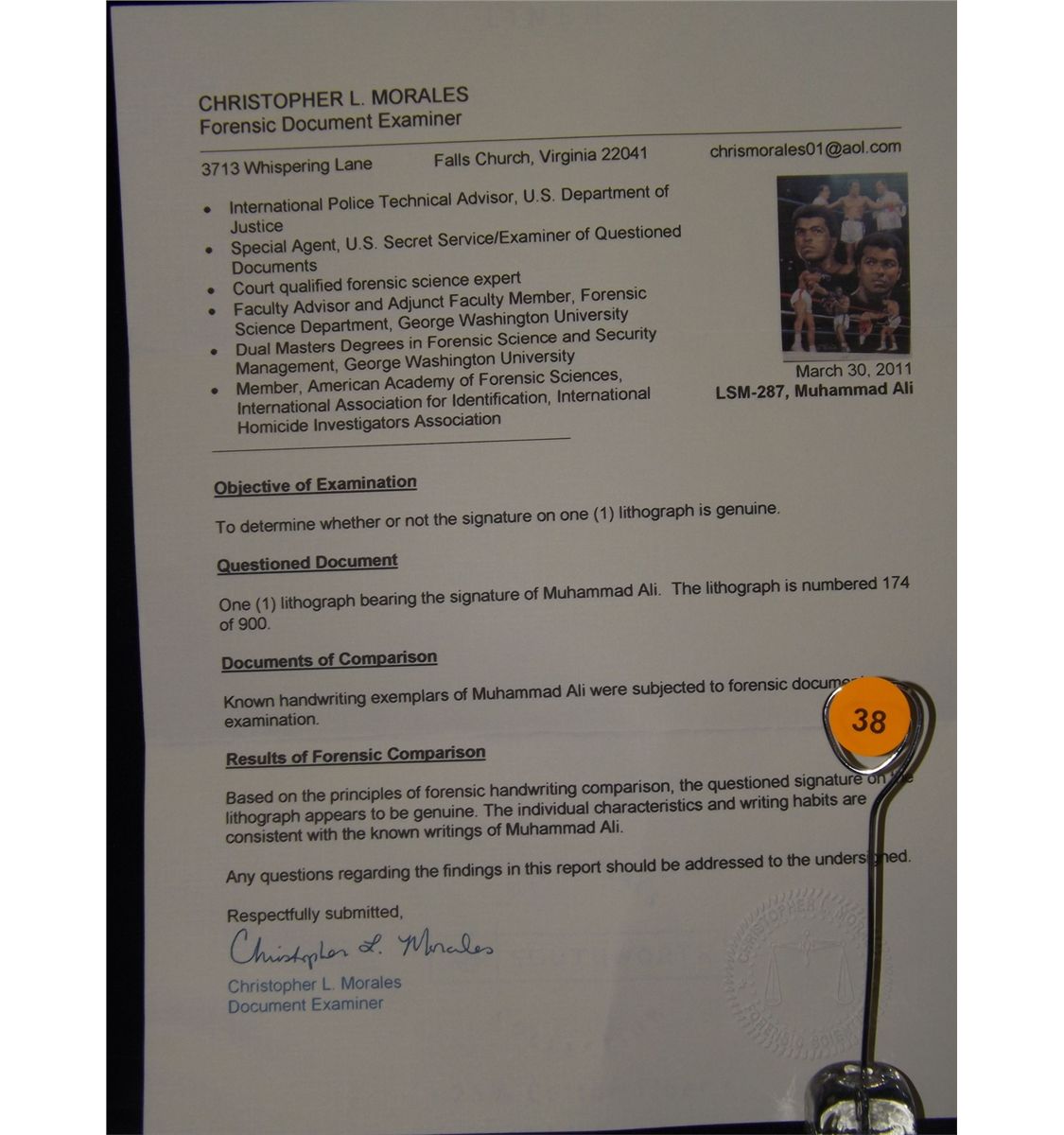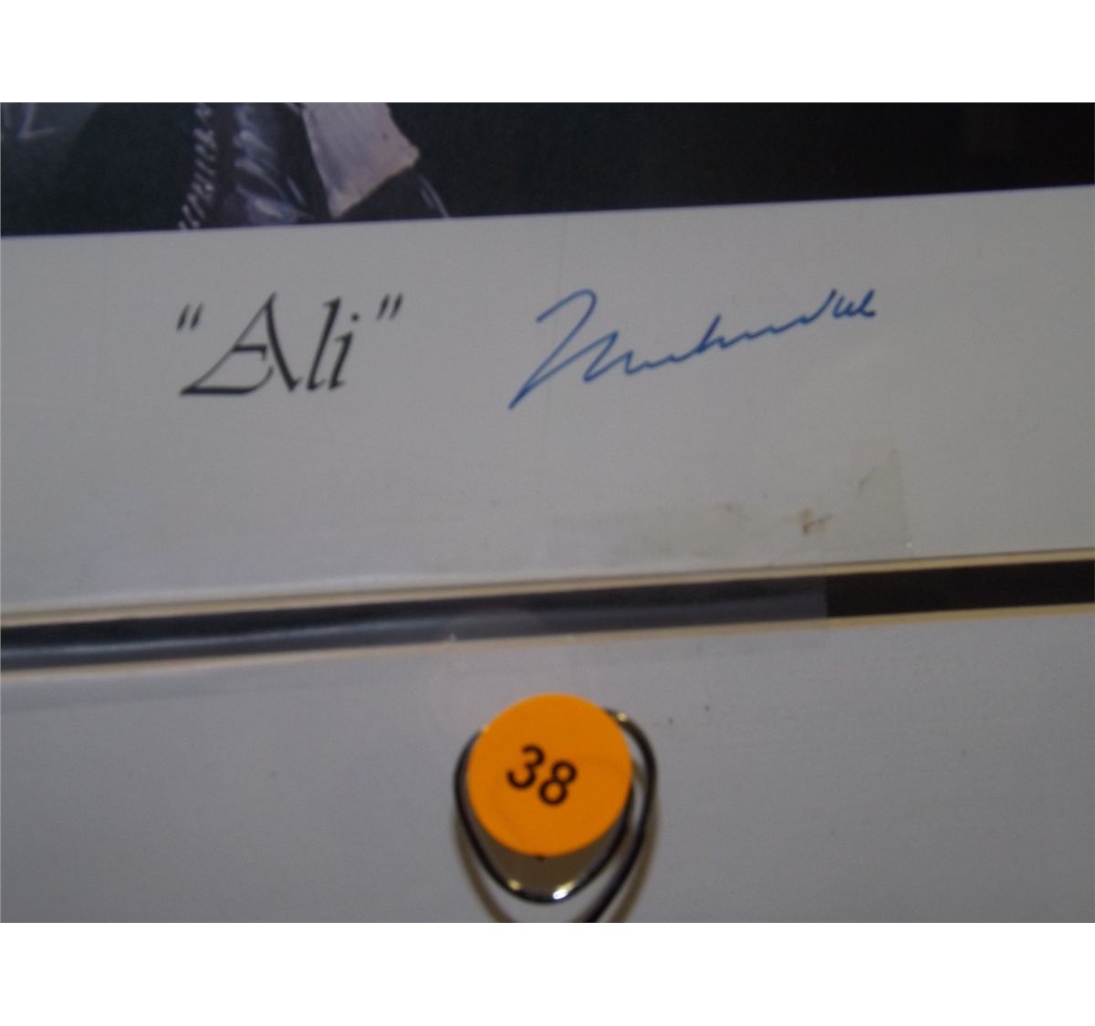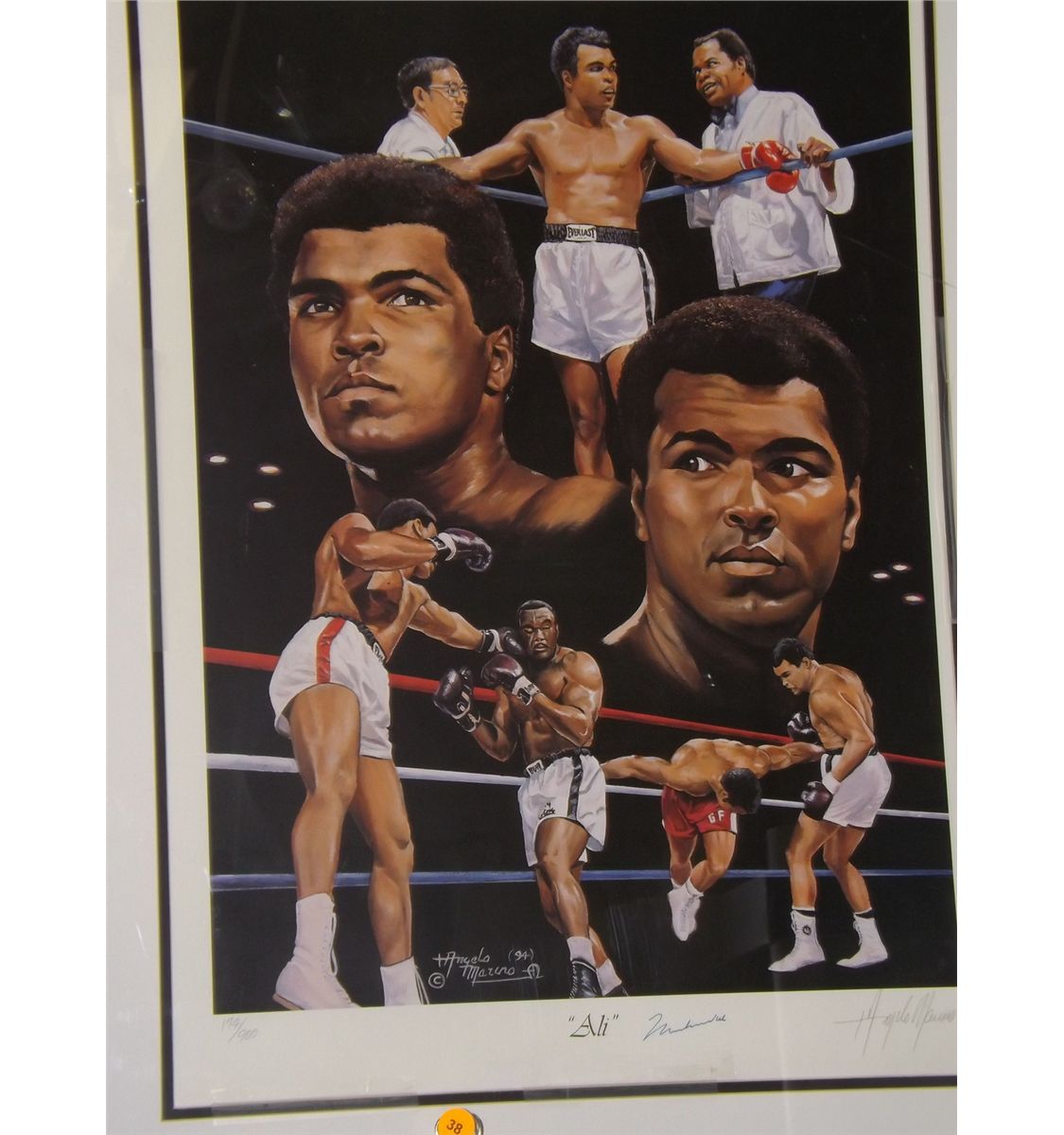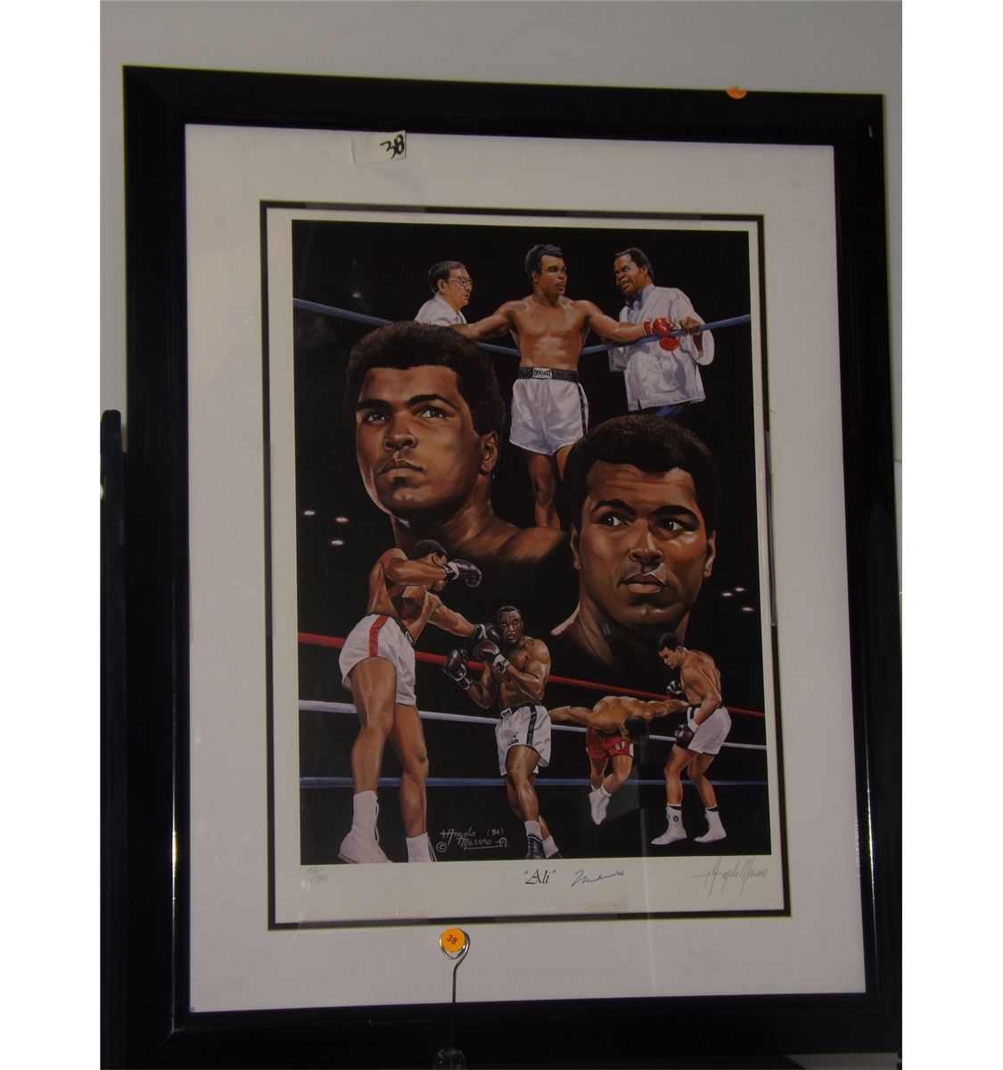 Muhammed Ali Autographed Print. 17x24 Framed Color Poster Print - also signed by artist. Appraised or estimated retail value $1600. COA by Christopher Morales. All Sales Final. Please see terms and conditions of auction.