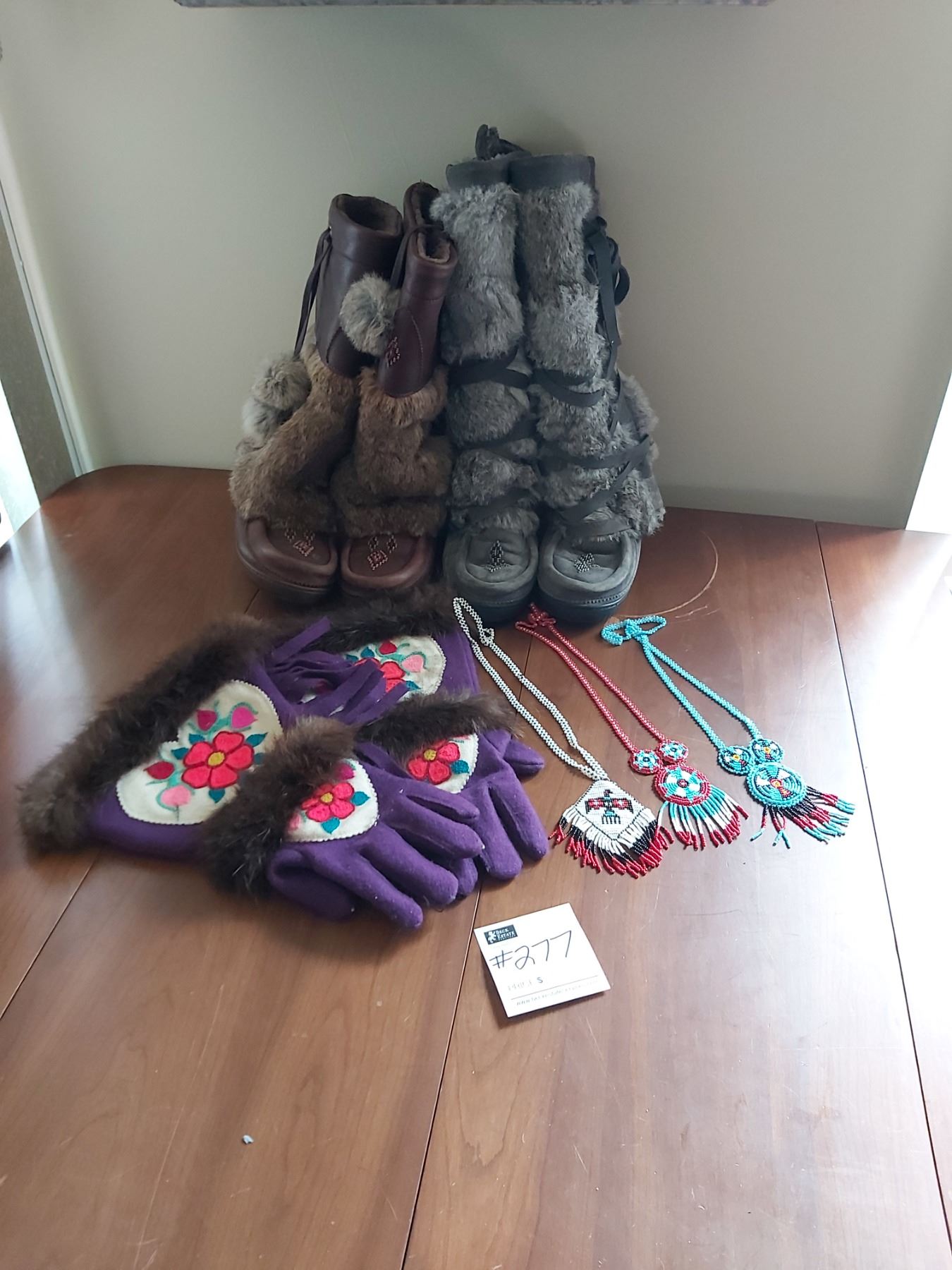 Mukluks x2. Pair of Gloves & Beaded Necklaces x3