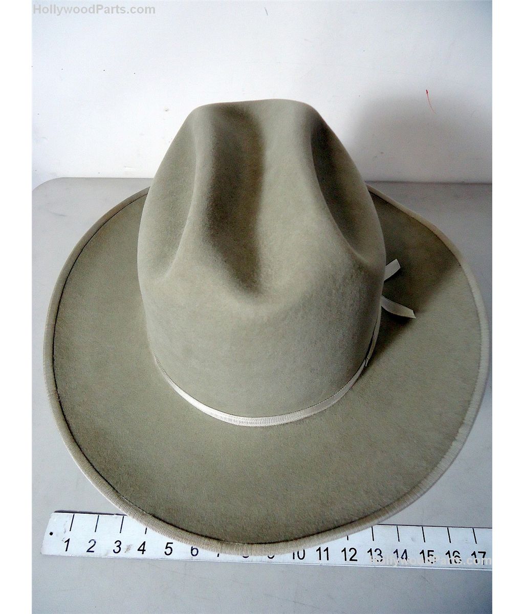 Hero screen used beige felt fedora hat worn by John Malkovich as General Thomas Timms in Mulholland Falls. "John Malkavich" printed in gold lettering on inside brim. Includes original hat box. Change C, Scene 23.