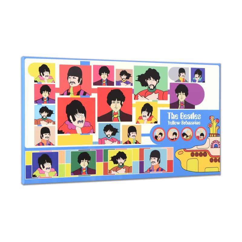 "Multi Beatles" is a limited edition giclee on gallery wrapped canvas featuring licensed animation from the 1968 Beatles film, "Yellow Submarine". Includes Certificate of Authenticity. Measures approx. 36" x 20" (image).