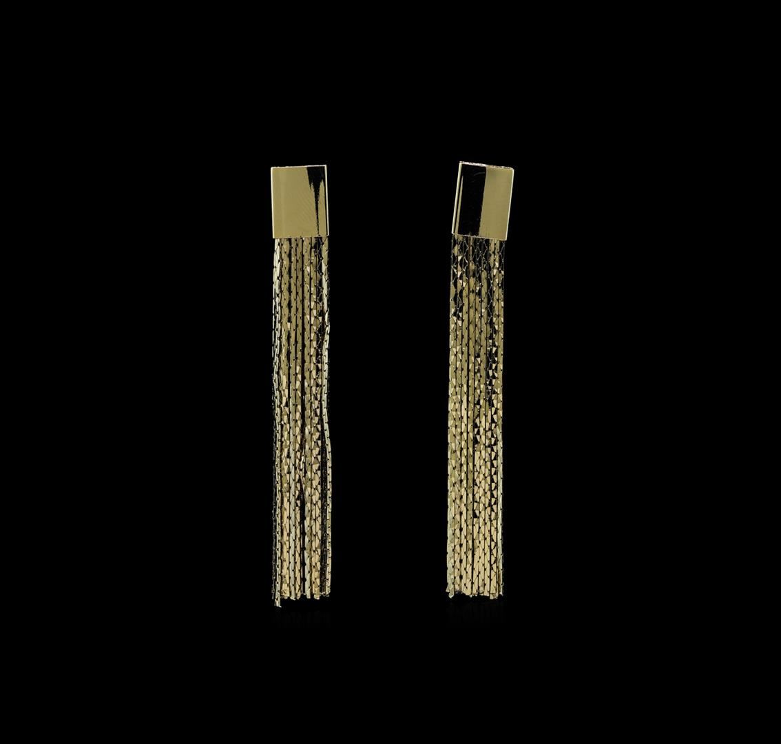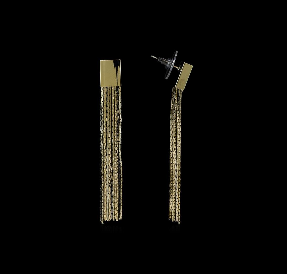 High end designer jewelry. Multi Chain Tassel Earrings - Gold Plated. Gold Plated Post Set. Gold. 2.5inches.