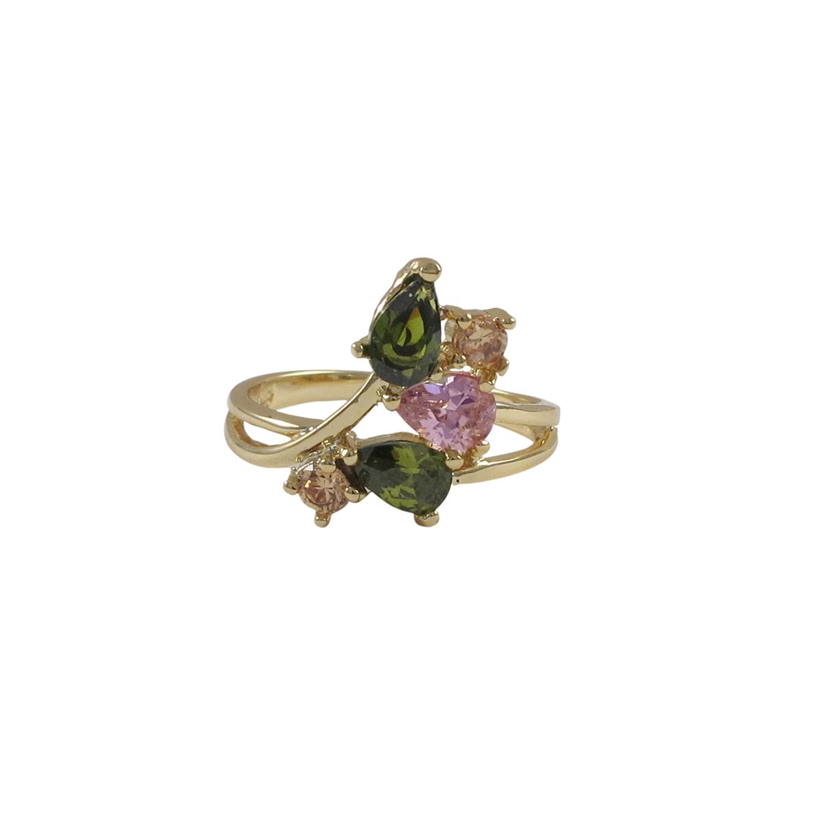 Multi Color CZ Leaf Design, Gold Plated Brass Ring, Size 5