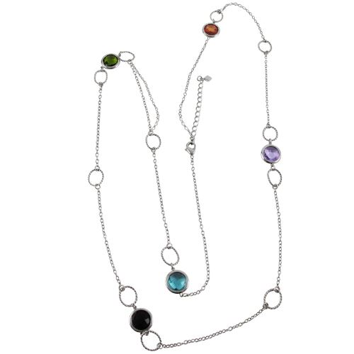 Multi Color CZ, Sterling Silver Necklace, 36"