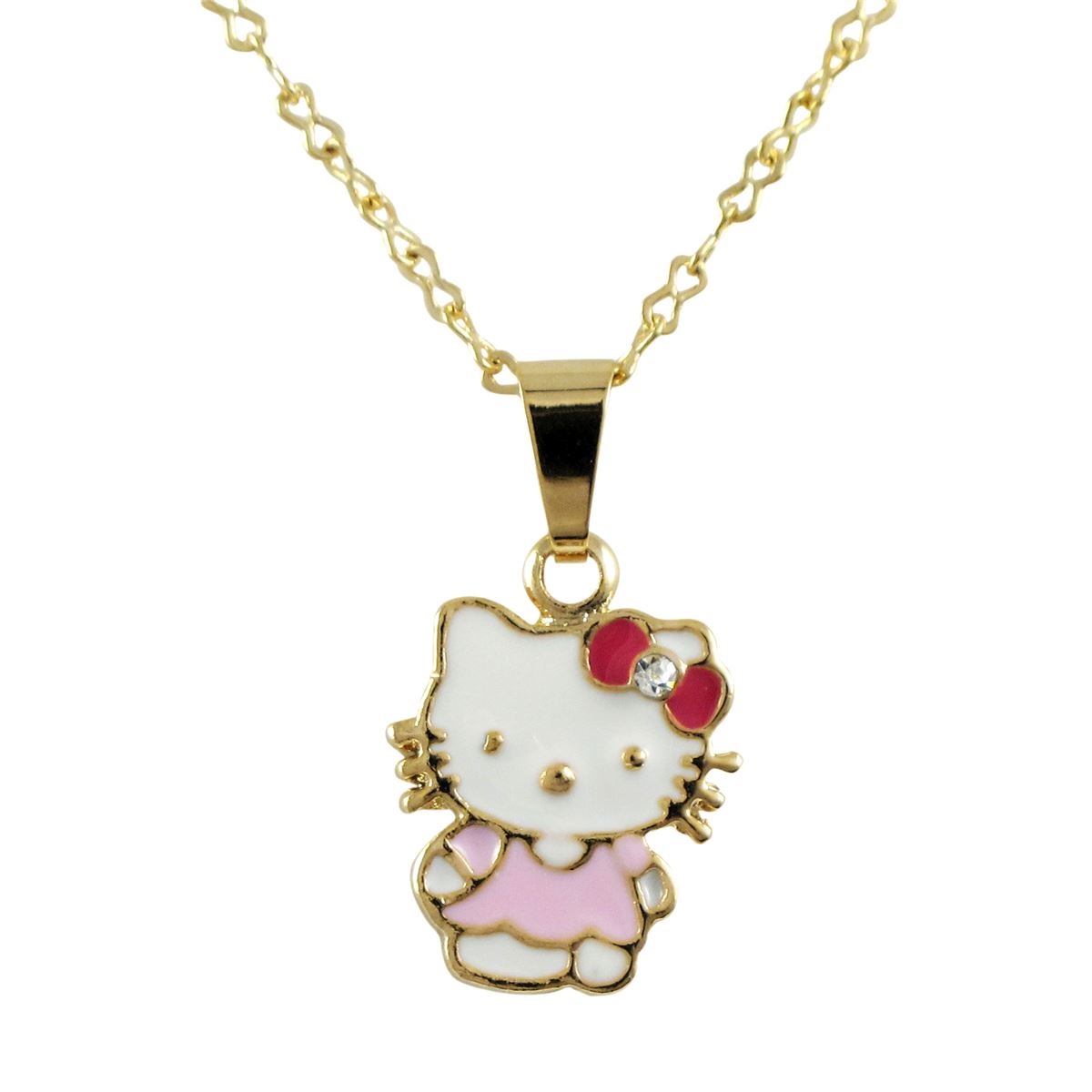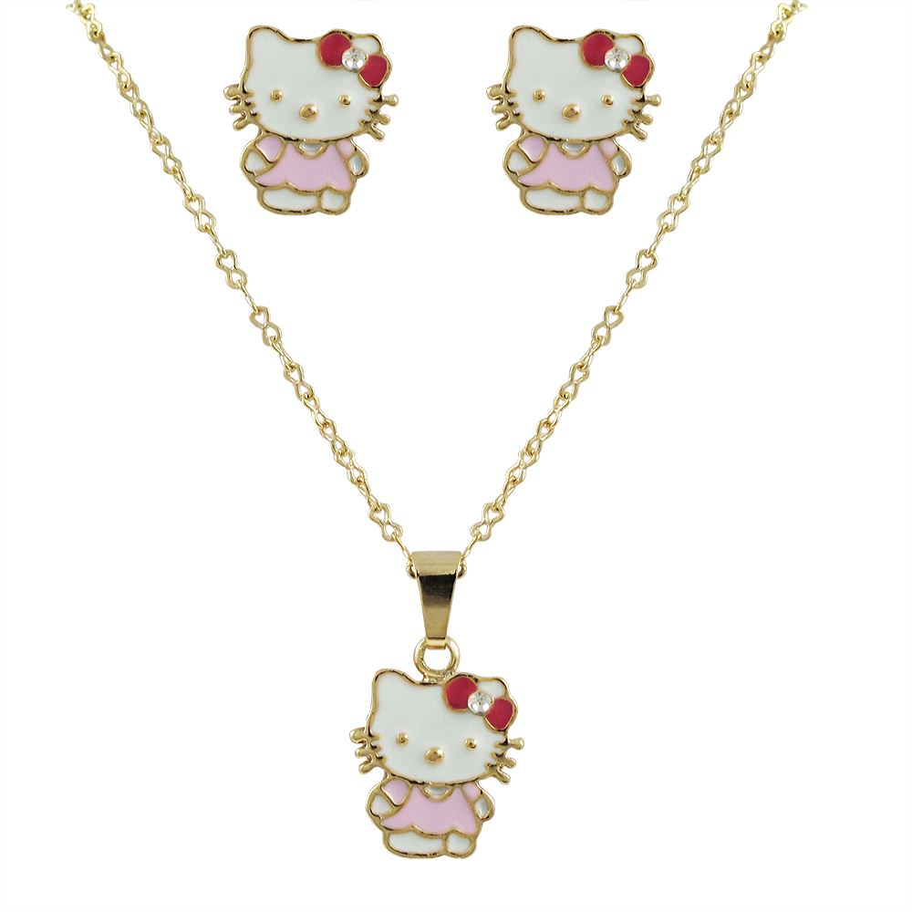 Multi Color Kitty Enamel & Gold Plated Brass - Post Earrings And Necklace Set