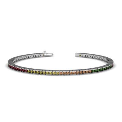 Mainstone: Multi Color Sapphire Rainbow Bracelets ; Multi-colors: red, orange,yellow, green & pink sapphire ; Total CTW: 4.9 ; Metal Purity: 14kt ; Metal: W/Y Gold ; Gem Count 1:80 ; Gems CTW: 4.9 ; Gem Size(mm): Approx. 2mm Round ; Gem Clarity: AA-AAA ; Gram Weight(g): 10.1 ; MSRP: $3392