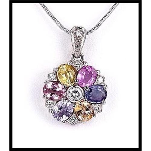 <tr><td>Title:Multi Color Sapphire Diamond Pendant</td></tr>