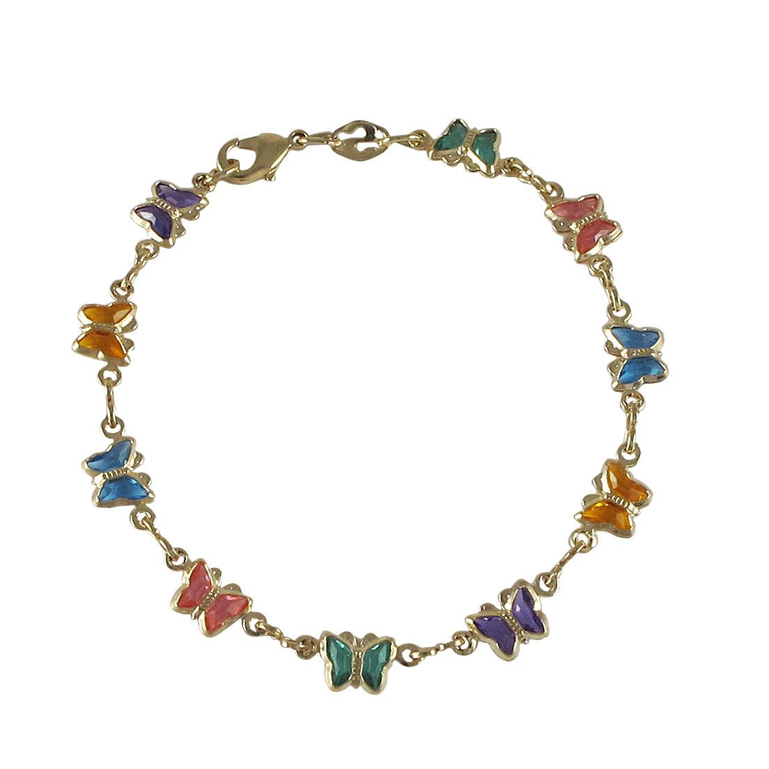 Multi Colored Butterfly Gold Filled Bracelet -6.5"