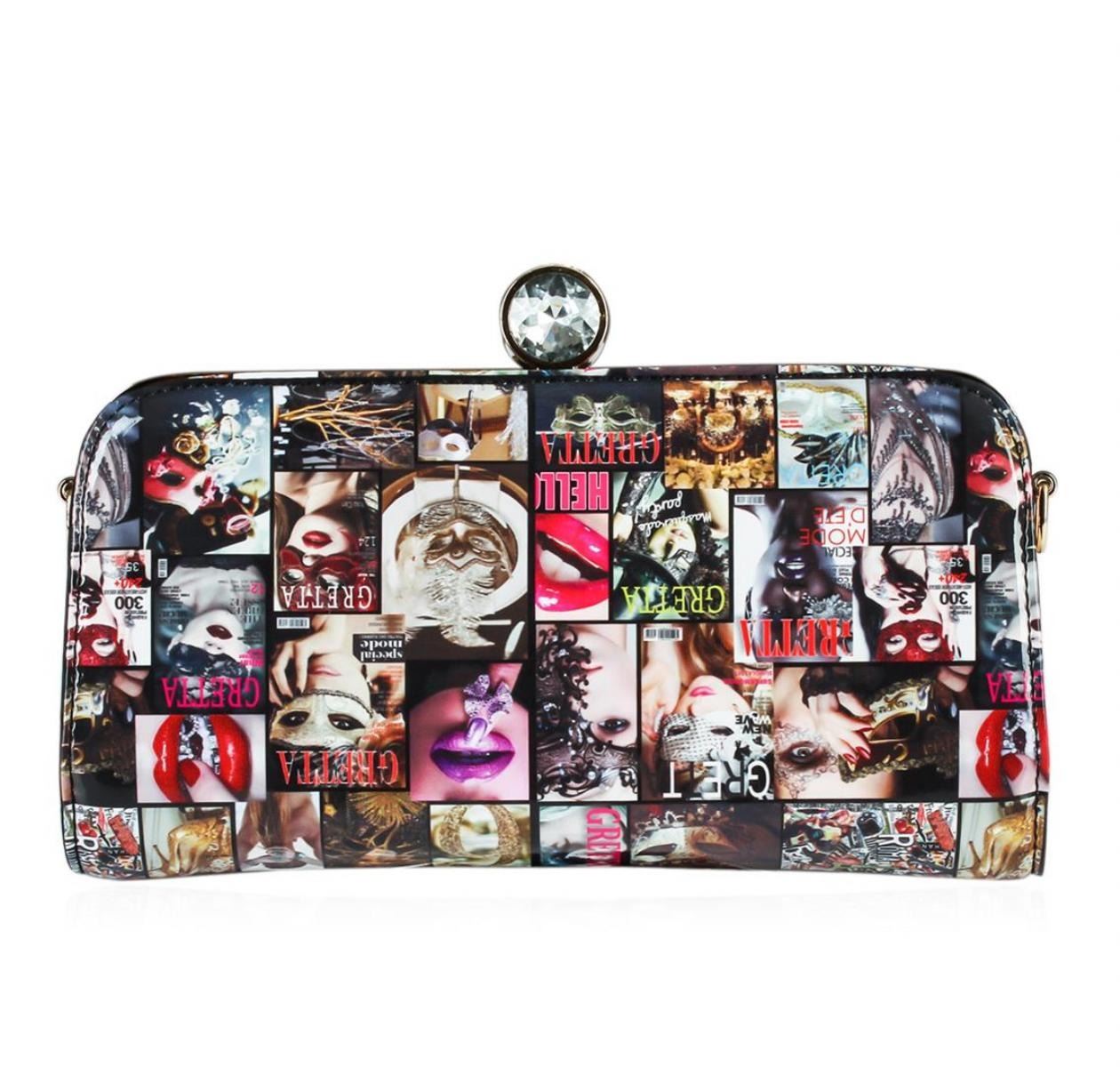A Beautiful Multi Colored Greta Patent Small Clutch.
