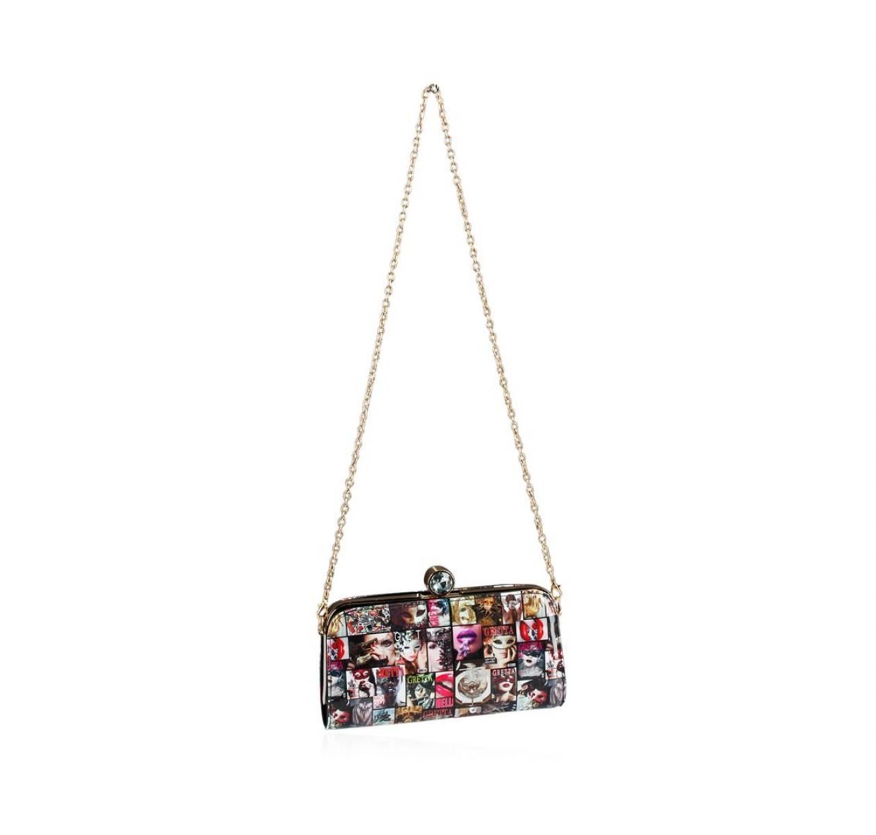 A Beautiful Multi Colored Greta Patent Small Clutch.