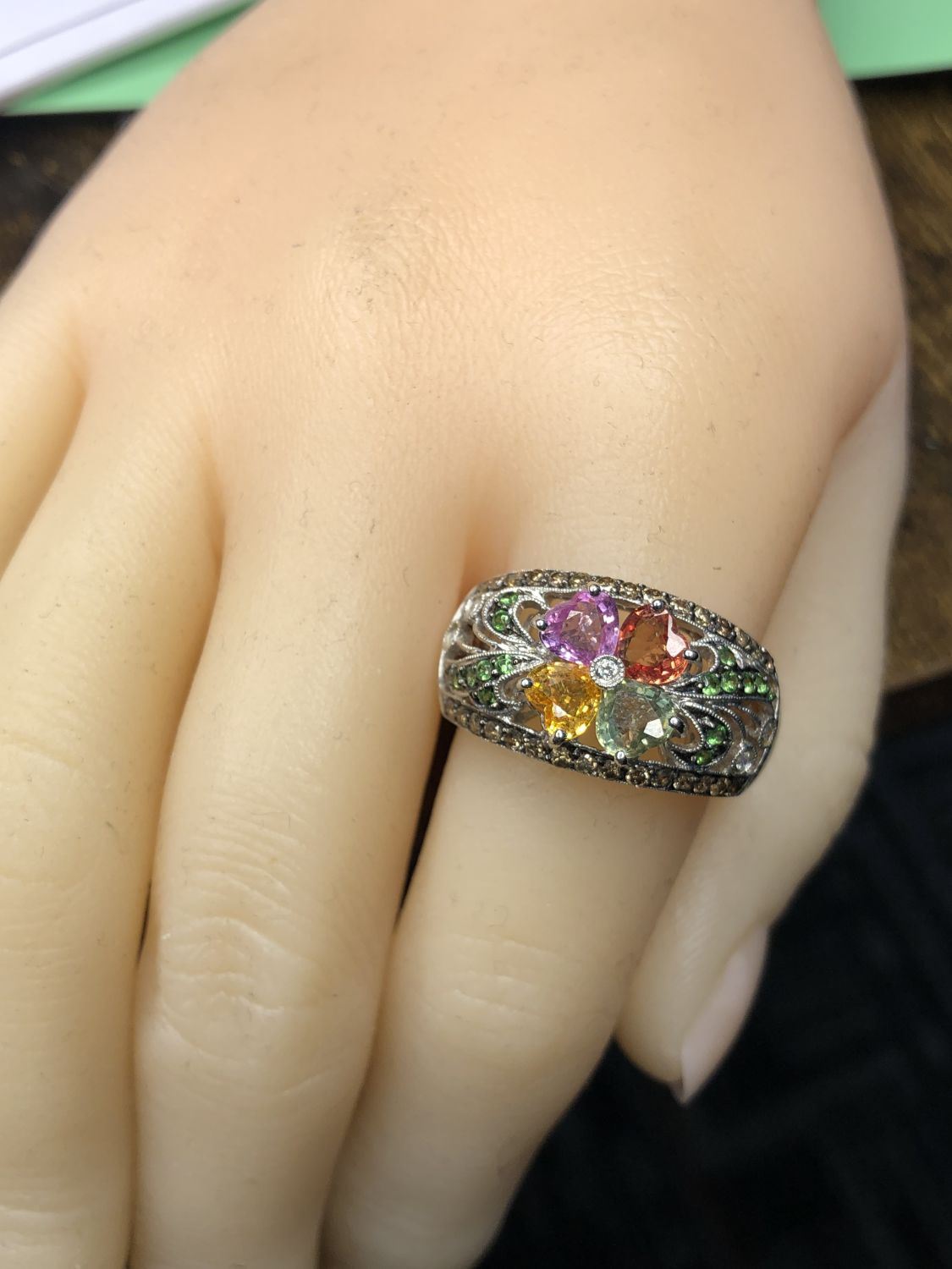 TITLE DESCRIPTION:& nbsp; Multi Colored Sapphire & amp; Diamond Flower Ring& nbsp;