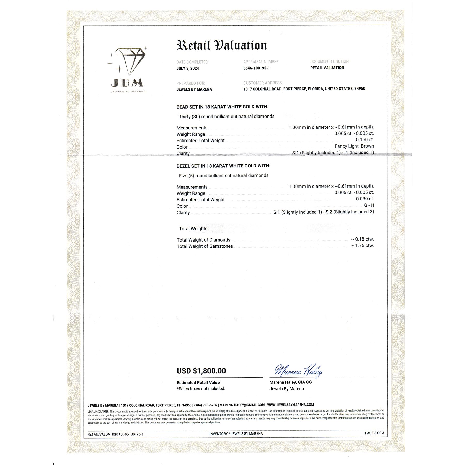 This ring appraised for $1,800.00 estimated retail replacement value, according to JBM (Jewels By Marena)