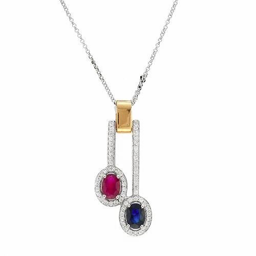 Multi-colored Sapphire w/ Diamonds Slider w/ Chain in 18K TwoTone Gold | 280150 Grams, featuring 0.48 Fancy Sapphire ct 60 1.73 ct 2 ct 18 ct