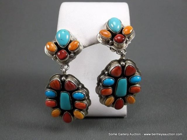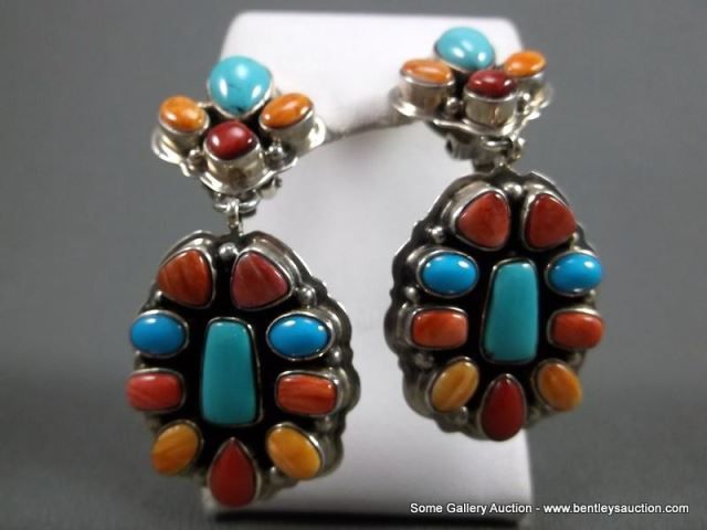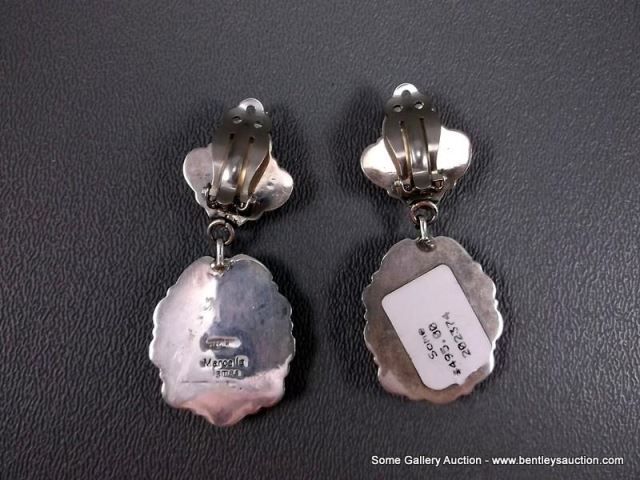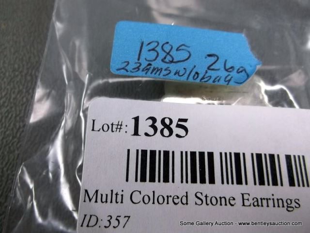 Multi Colored Stone Earrings w/ Sterling Silver Clip-Ons- Marked Marcella James Weight: 23.2 Grams R