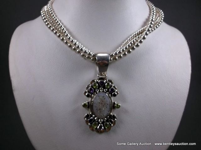 Multi-Colored Stone Sterling Silver Necklace- Marked Paul Livingston Weight: 81.8 Grams Retail: $1,4