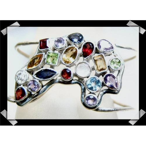 <tr><td>Title:Multi Faceted Gemstone Sterling Cuff Bracelet</td></tr>