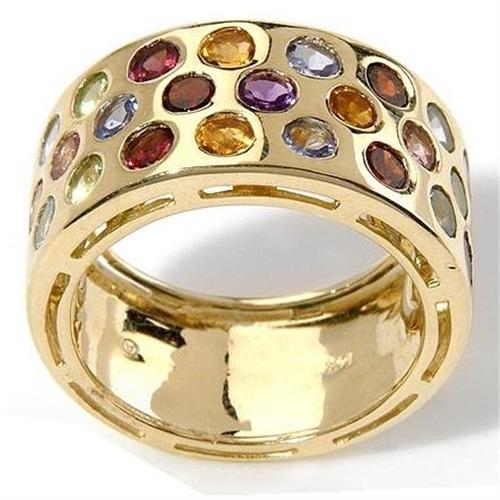 <tr><td>Title:Multi-Gemstone Band Ring</td></tr>