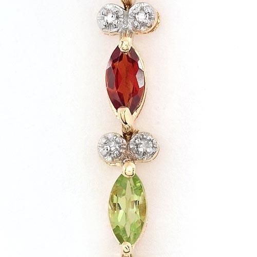 There are eithteen marquise cut gemstones (six garnets, three peridot, three blue topaz and three citrine) prong set with thirty-nine round, .24ctw diamonds in this 10kt. yellow gold bracelet. Approx. total carat is approx. 5.0ctw. The bracelet measures 7.5 inches in length.