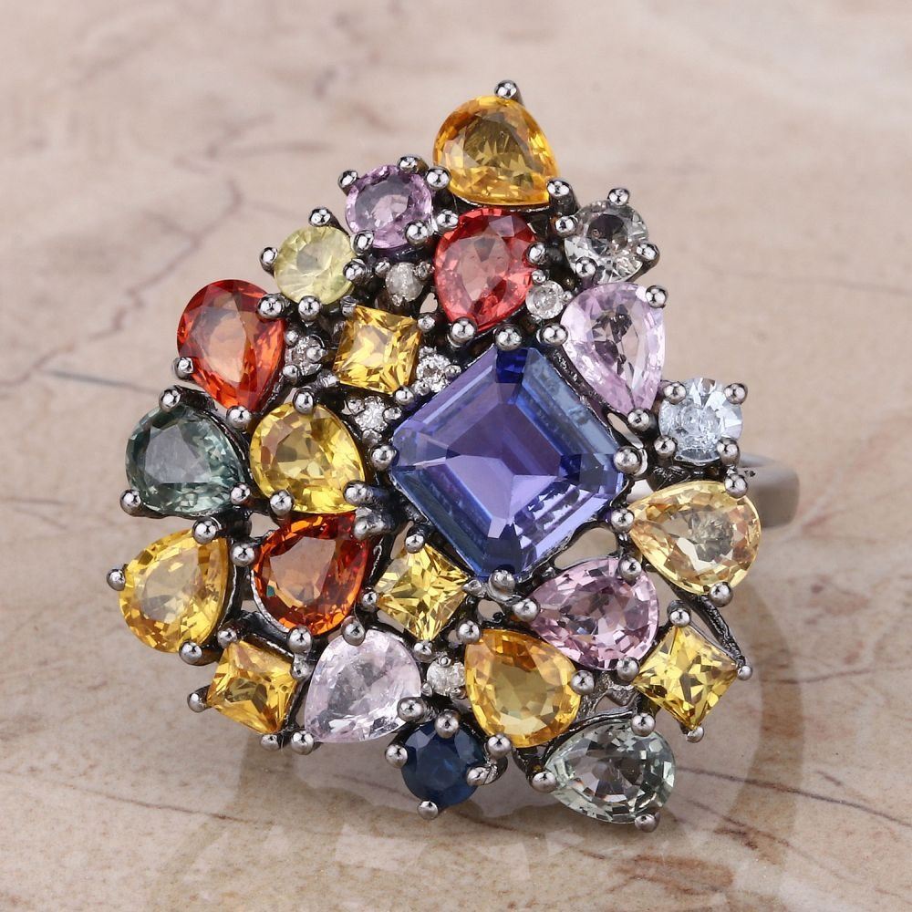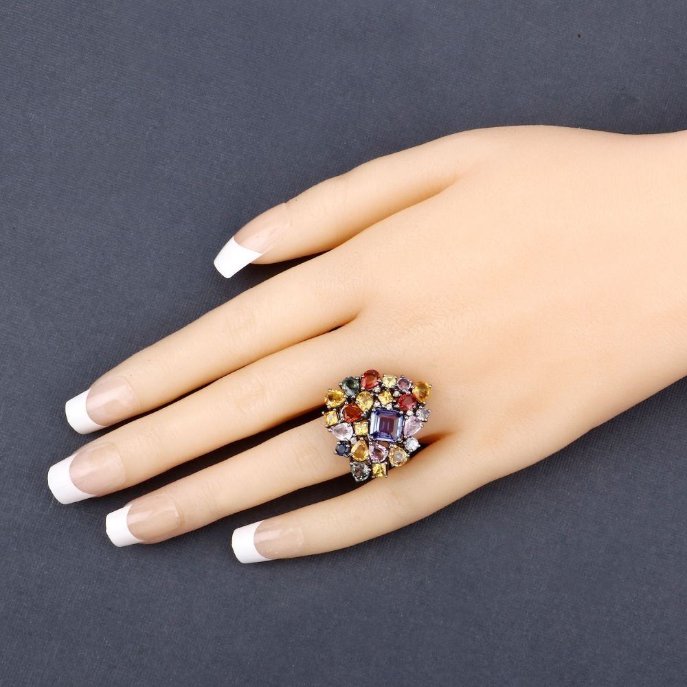 TITLE DESCRIPTION: Multi Gemstone Heart Shape Cocktail Ring