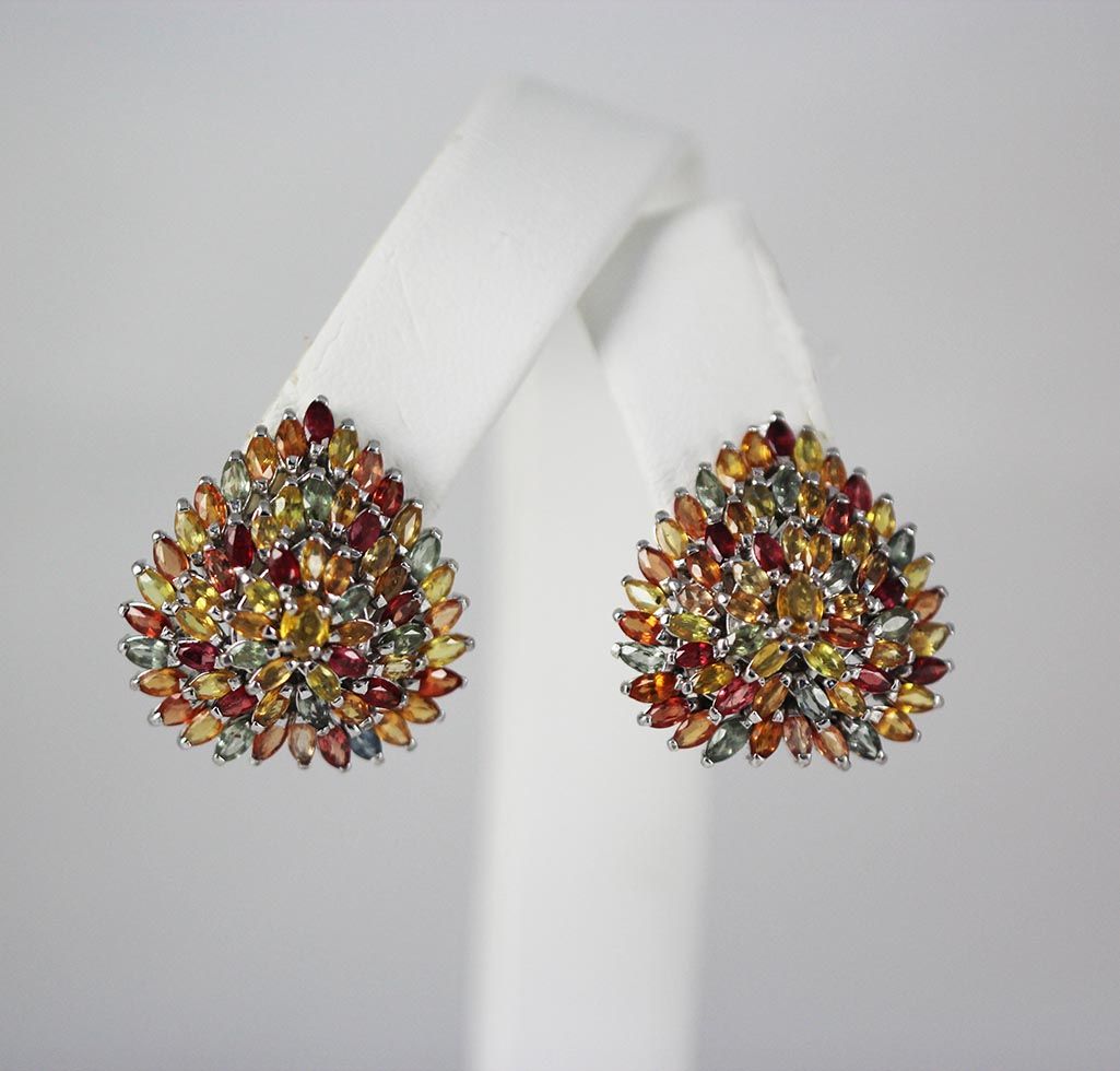 Multi Gemstone Marquise Heart Silver Clip Earring, 12.2 **|**|** 12.20g Multi Gemstones Marquise Heart Silver Clip Earring ; MSRP: $300