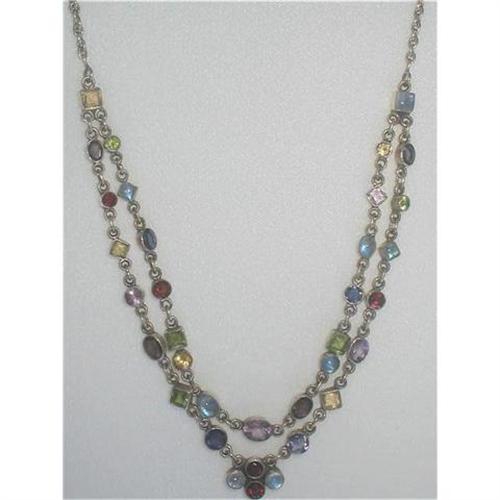 <tr><td>Title:Multi Gemstone & Silver Double Strand Necklace</td></tr>