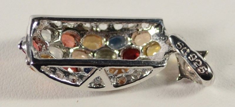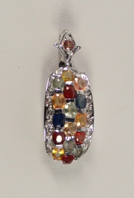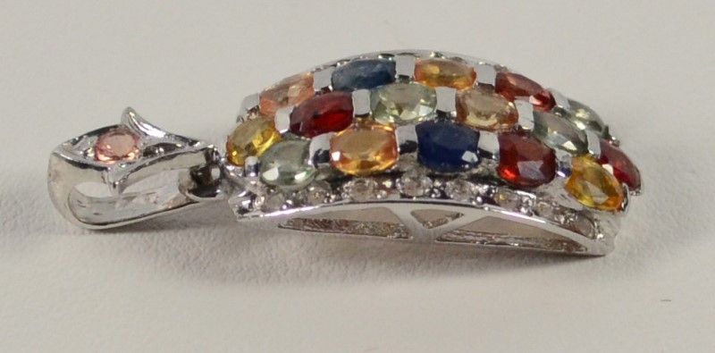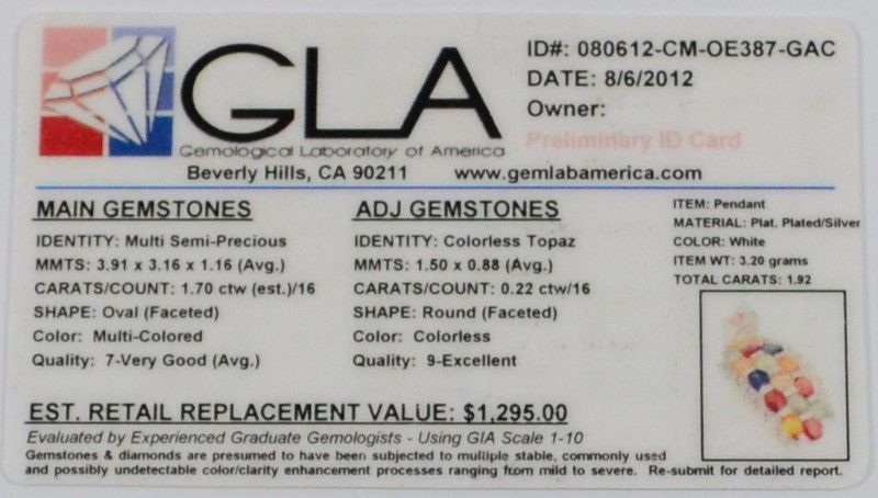 Oval Shaped Semi Precious Gemstones cascade down the front of this lovely Sterling Silver Pendant. 1.70 ctw. Gemological Laboratory of America estimates value at $1295.00. (Includes Paperwork)