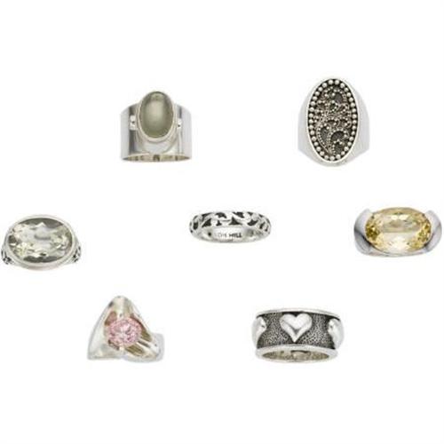 <B>Multi-Stone, Sterling Silver Ring Lot</B></I> The lot includes: one ring featuring an oval-shaped moonstone cabochon measuring 12.50 x 9.00 mm, enhanced by round-cut peridot, bezel set in sterling silver <I>(Size 8)</B></I>; one ring featuring an oval-shaped citrine measuring 18.00 x 13.00 x 8.45 mm and weighing approximately 10.75 carats, half-bezel set in sterling silver <I>(Size 8)</B></I>; one ring featuring an oval-shaped green quartz measuring 17.50 x 12.50 mm and weighing approximately 9.50 carats, bezel set in decorative sterling silver <I>(Size 7-1/2)</B></I>; one ring featuring a round-cut pink cubic zirconia, set in sterling silver <I>(Size 8)</B></I>; one ring, designed with a foliate motif, enhanced by beaded accents in sterling silver <I>(Size 8)</B></I>; one band, designed with a heat motif, in sterling silver <I>(Size 8)</B></I>; together with a sterling silver band, enhanced by anodized accents <I>(Size 8)</B></I>. Gross weight for the lot is 97.60 grams.<BR><BR><b>Shipping:</b> Miscellaneous Collectibles, Smal (<a target="_blank" href="http://www.heritageauctions.com/common/shipping.php">view shipping information</a>)