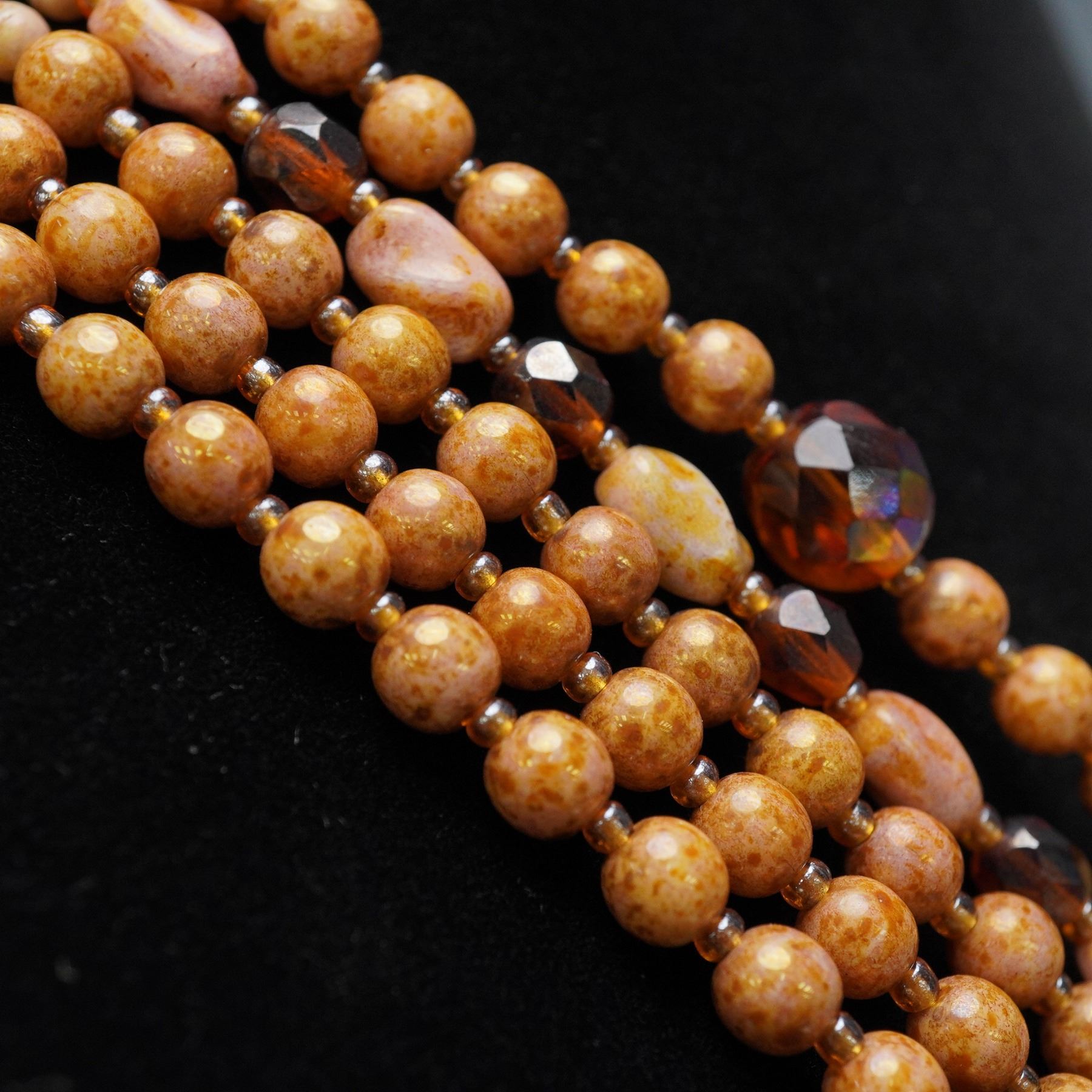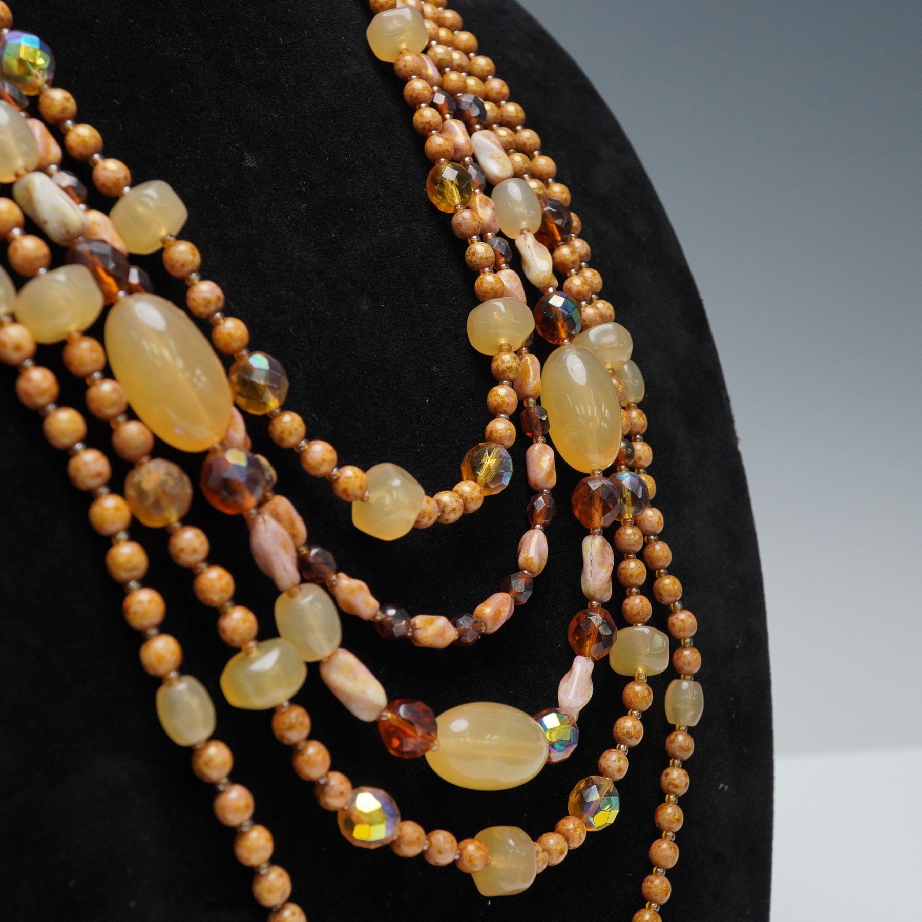 Multi-Strand Beaded Statement Necklace, Amber Tones