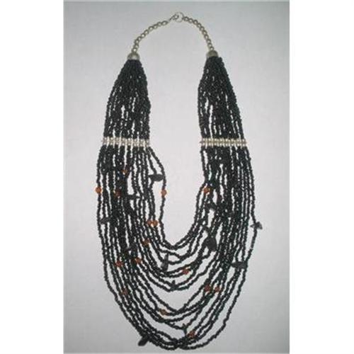 <tr><td>Title:Multi Strand Black Glass Torsade Necklace with</td></tr>