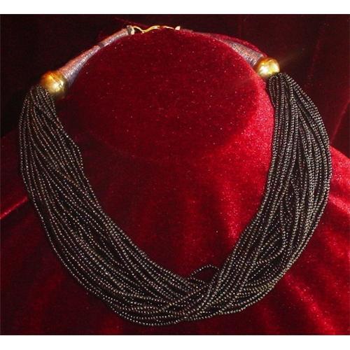<tr><td>Title:Multi-Strand Black Seed Bead Necklace</td></tr>